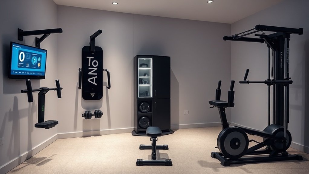 Bodybuilders in 2025 have access to smart fitness tools like the AI-driven Tempo Studio, Speediance Gym Monster, and Tonal 2, which provide real-time coaching, adaptive digital resistance, and thorough progress tracking directly in compact home setups. Advanced wearables and biometric sensors deliver instant physiological feedback, while intelligent kettlebells and EMS devices offer dynamic strength adjustments and enhanced muscle activation. These integrated systems personalize workouts, optimize technique, and help users surpass plateaus—further details reveal how each tool adapts as training evolves.